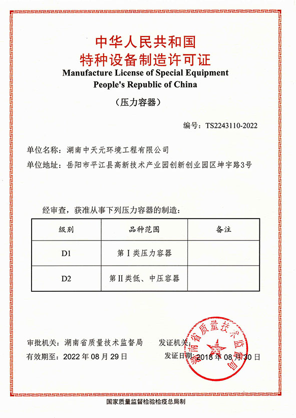 压力容器制造许可证