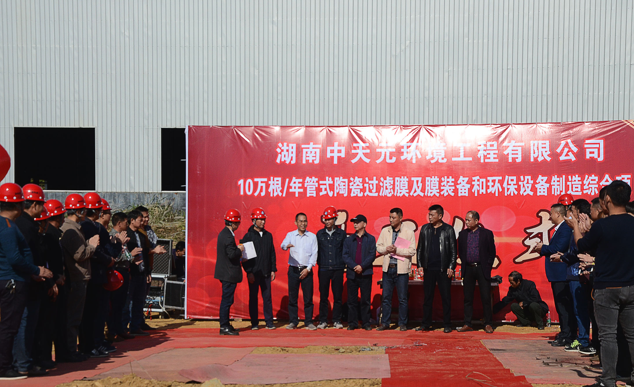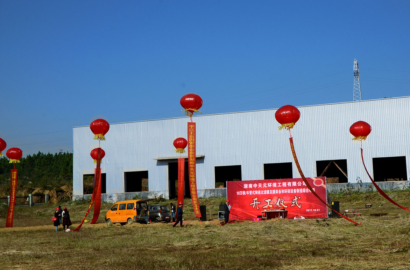 10月31日上午10点18分,公司“10万根/年管式陶瓷过滤膜及膜装备和环保设备制造”综合项目工程开工仪式在平江县伍市工业园举行。平江工业园区管委会领导及相关职能部门、伍市居委会支村委领导及相关组长、项目承建方湖南省建工集团三公司、项目监理方岳阳启明星监理咨询有限公司、中天元公司董事长刘凯中、总经理谢志成及各部门负责人出席了此次活动。